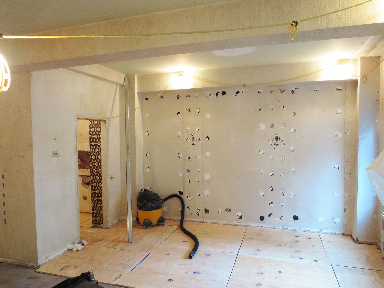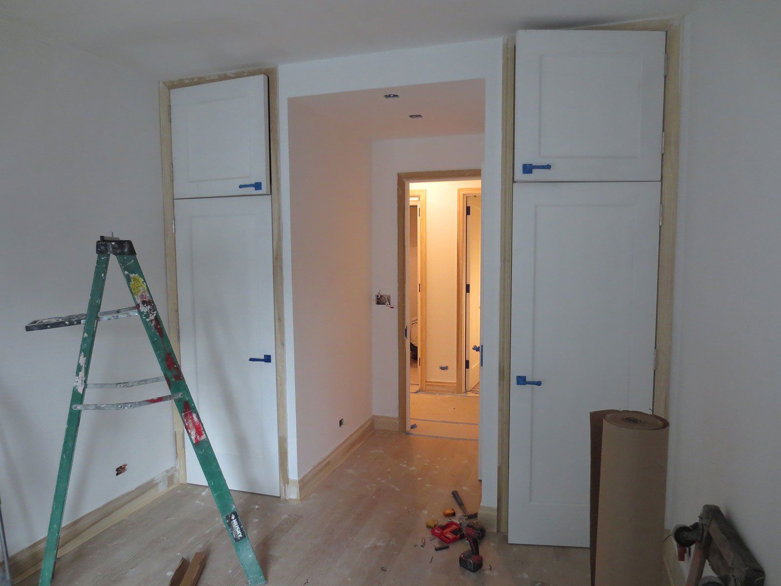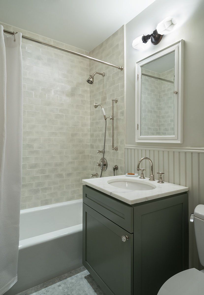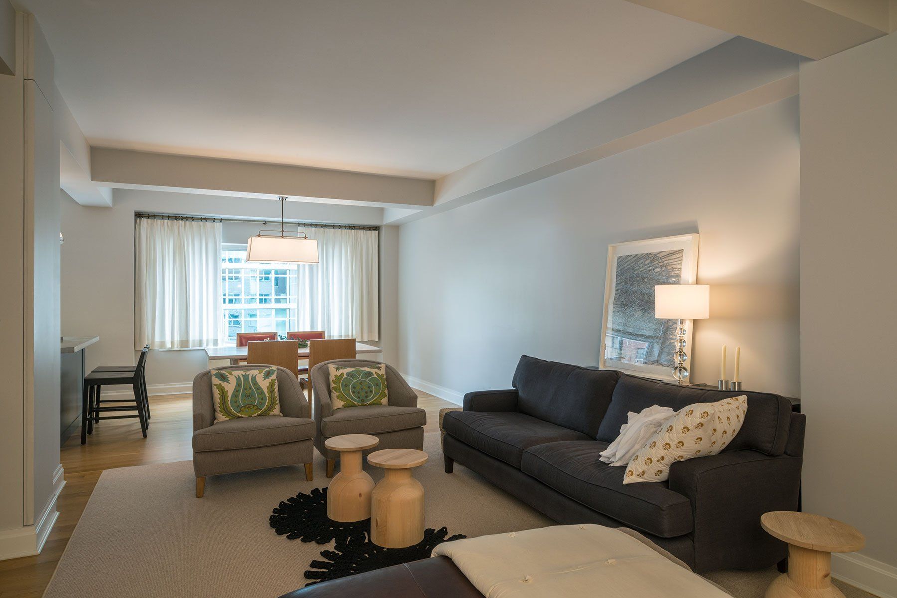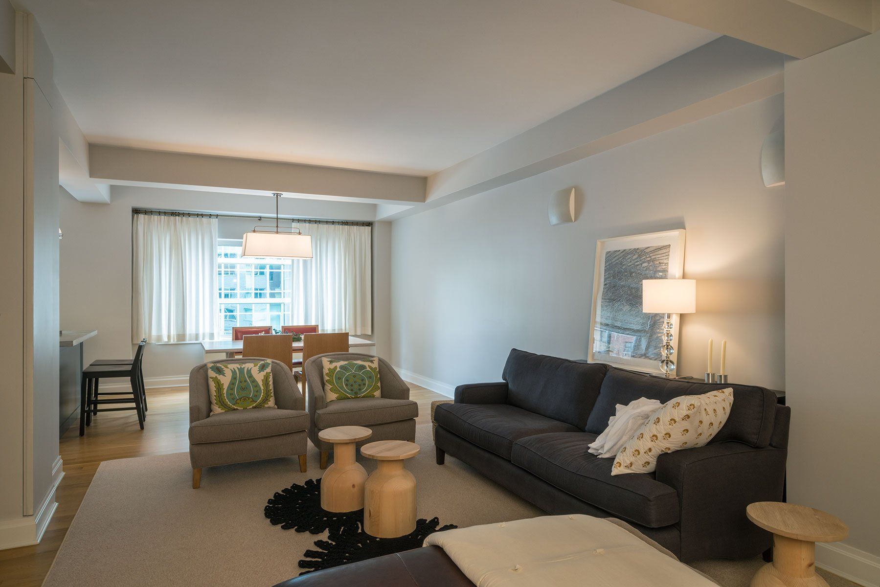This gut renovation reorganized spaces to create better adjacencies and flow. The kitchen was relocated into the area of the former dining room, creating a connection to the living room. Existing guest and master bathrooms were redesigned. Millwork and finishes mixed warm and cool materials, including ceramic tile, painted wood, stone, and concrete. The solution relates clean lines to a traditional vocabulary within a cohesive aesthetic.
