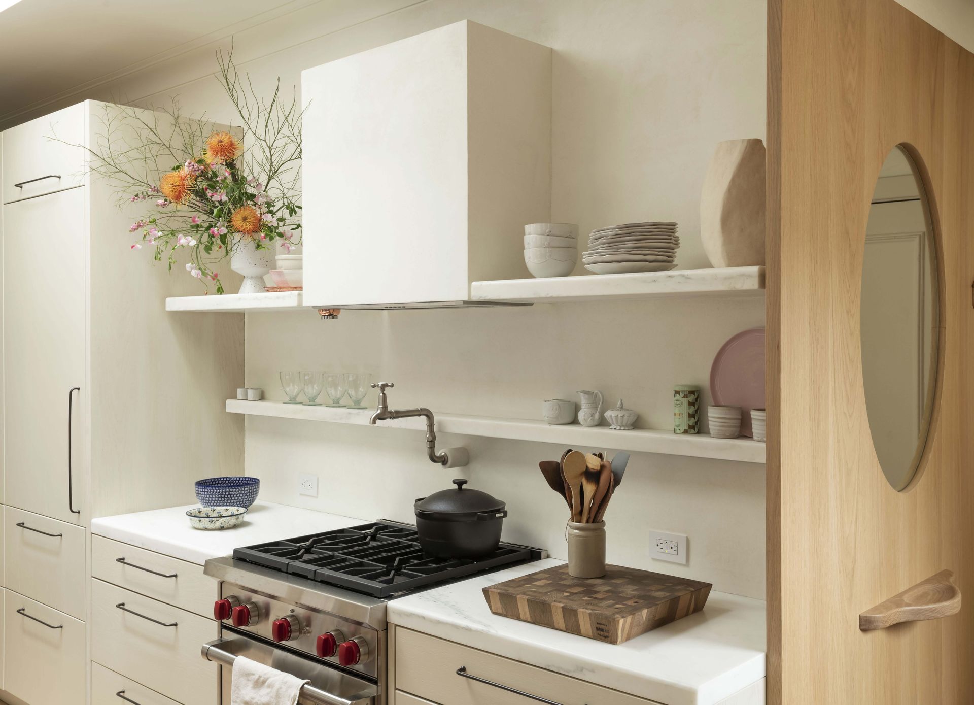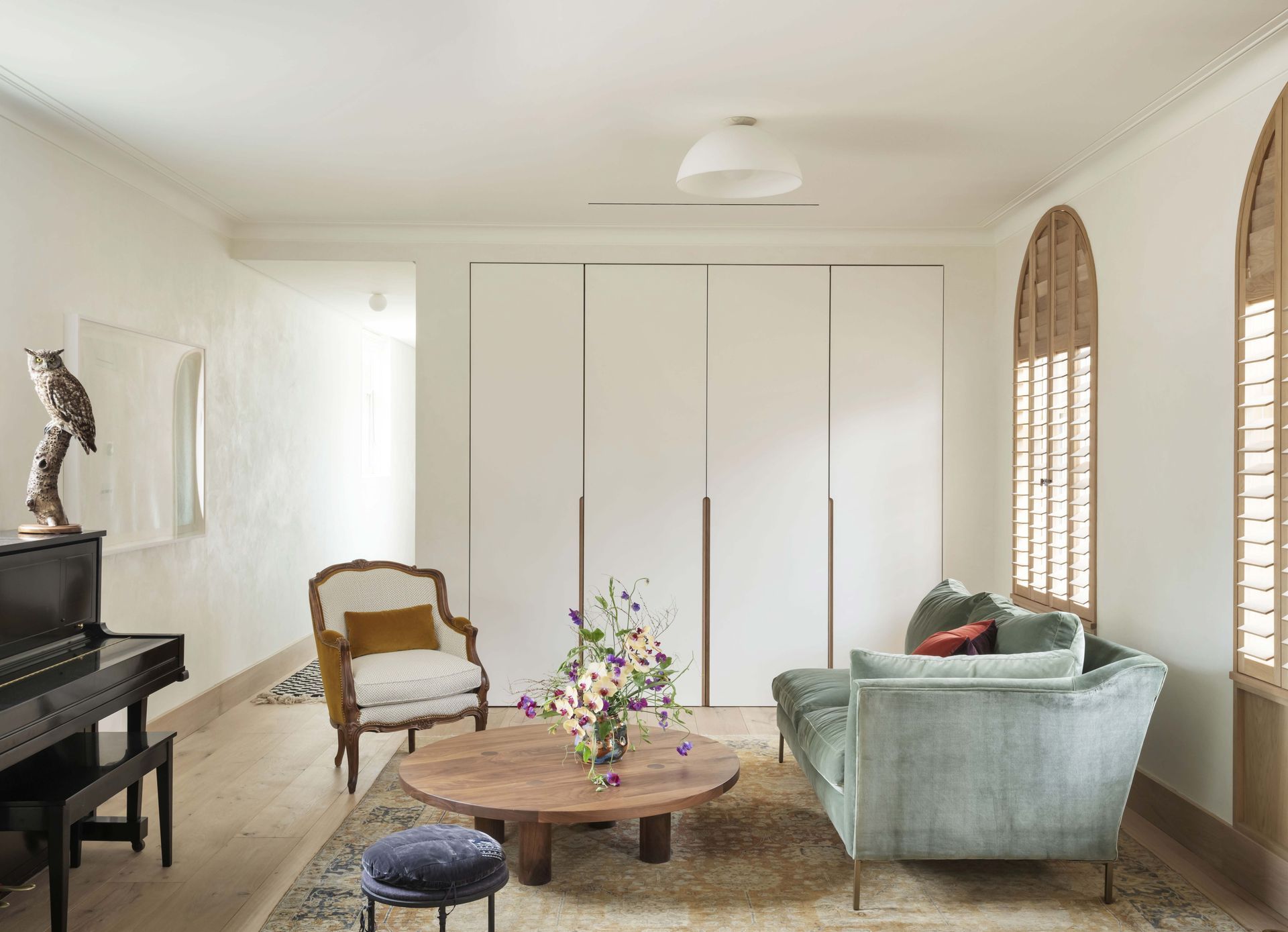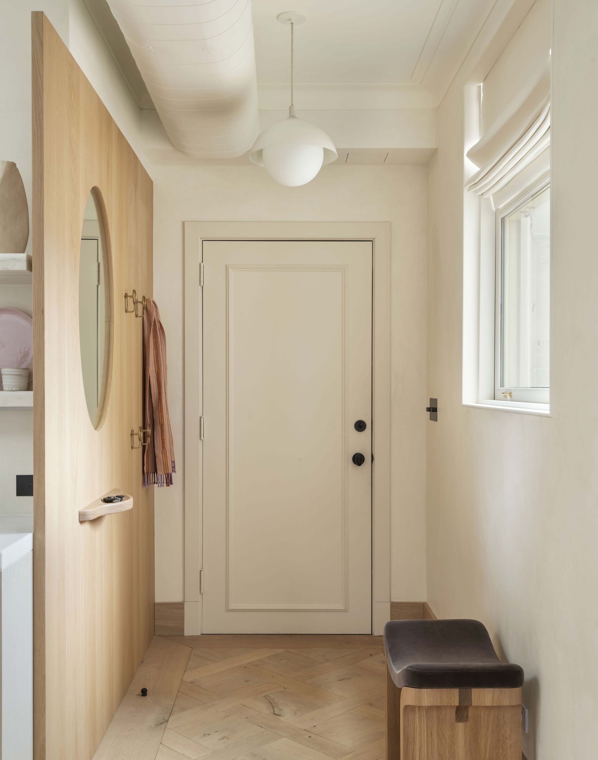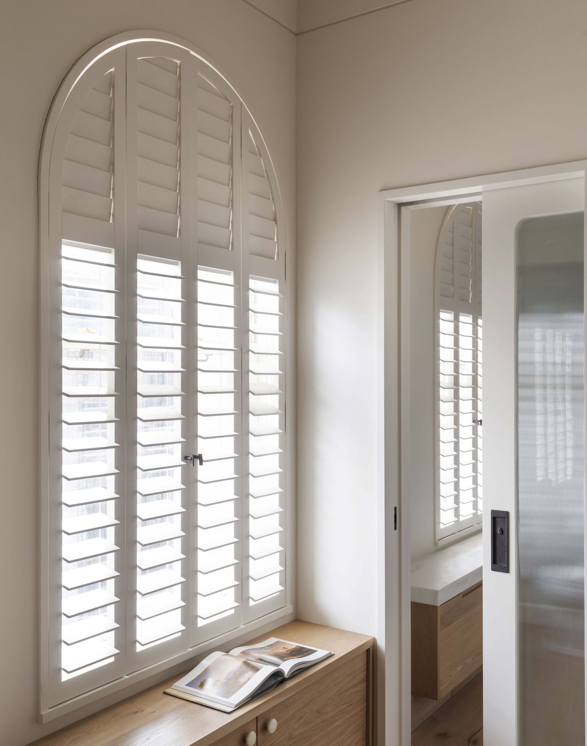 Housed on the Upper West side, the apartment, originally made up of a former staff’s quarters, was purchased as one narrow, empty space, however, doorways and custom arched window shutters, venetian plaster and soft Millwork, transforming this space into a tranquil space the Client so desired.